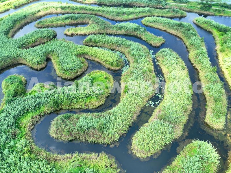 图片说明:2023年8月26日在江苏省淮安市金湖县拍摄的白马湖国家湿地公园美丽景色。