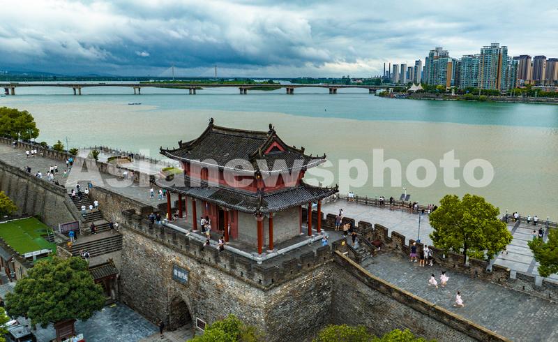 图片说明:2023年8月27日,湖北省襄阳市,汉江襄阳城区段“泾渭分明”景观。