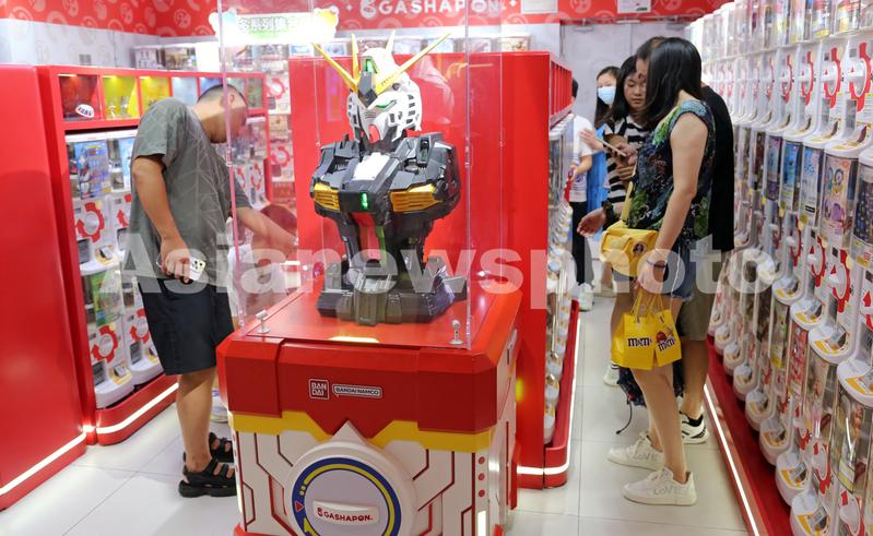 2023年8月24日,上海,中国首家二次元文化商城百联ZX创趣场内,日本万代高达机器人扭蛋自助店铺吸引玩家。
