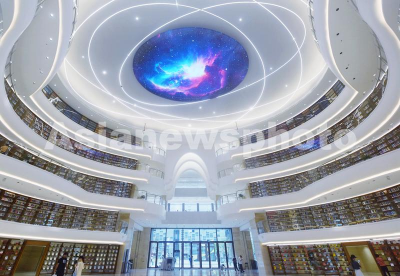 2023年8月29日,读者在参观浙江图书馆之江新馆的“书籍之殿”。