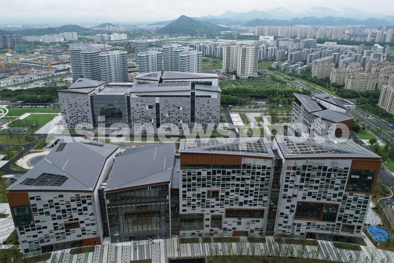 2023年8月29日,从空中俯瞰浙江图书馆之江新馆。