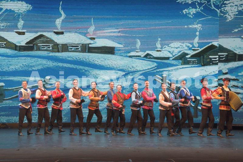 2023年8月28日,俄罗斯国家模范“小白桦”舞蹈艺术团表演的舞蹈《单身汉》。