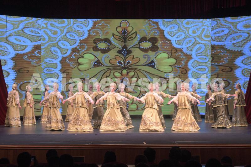 2023年8月28日,俄罗斯国家模范“小白桦”舞蹈艺术团表演的民间舞蹈《花边》。
