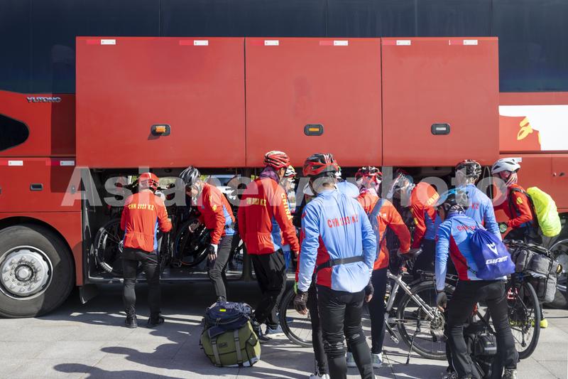 2023年9月3日,骑行团整理装备准备乘坐中哈国际道路旅客班车出境。