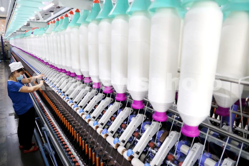 图片说明:9月5日,工人在山东省滨州市沾化区黄升镇祥瑞祥纺织企业车间内忙碌。