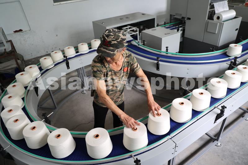 图片说明:9月5日,工人在山东省滨州市沾化区黄升镇祥瑞祥纺织企业车间内忙碌。
