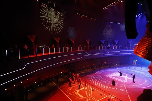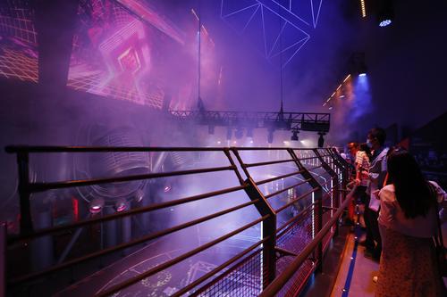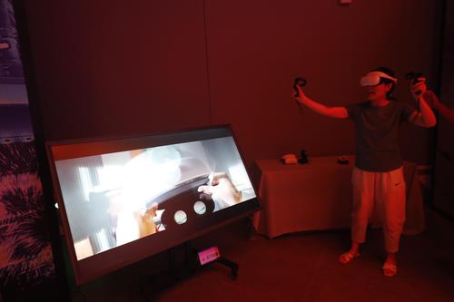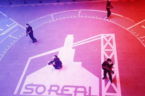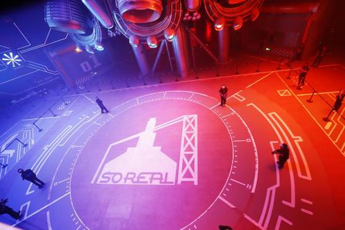 2023年9月2日,首钢园一高炉SoReal元宇宙乐园体验区VR大空间多人对战游戏展示