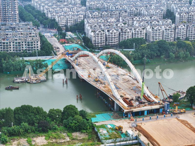 图片说明:2023年9月5日,江苏省南京市梅苑南路跨秦淮新河大桥施工现场。
