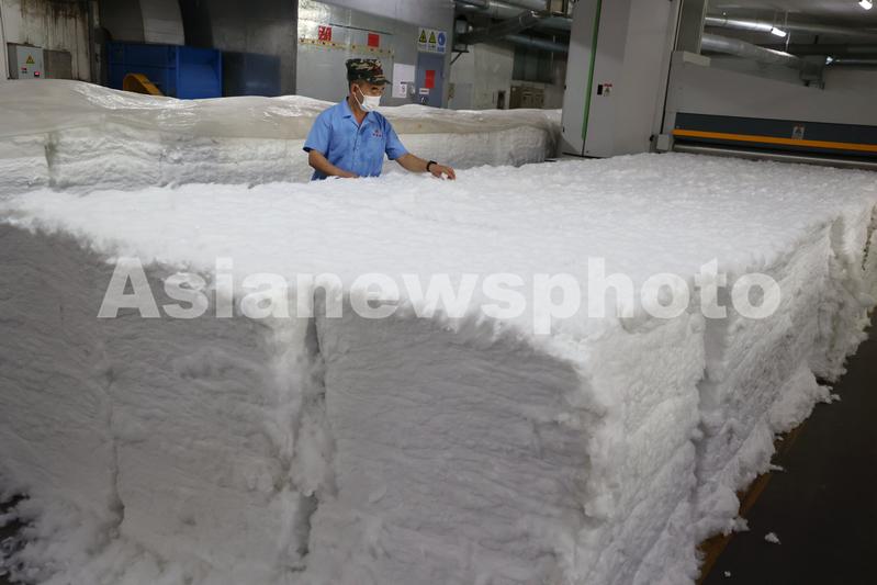 图片说明:9月5日,工人在山东省滨州市沾化区黄升镇祥瑞祥纺织企业车间内忙碌。