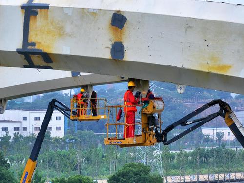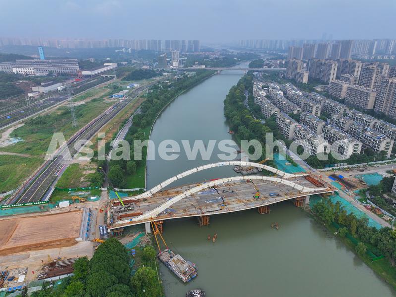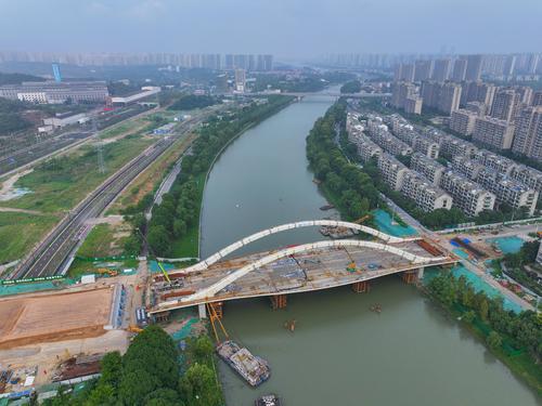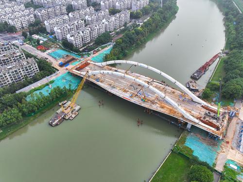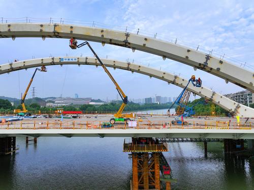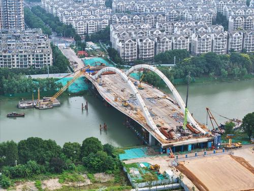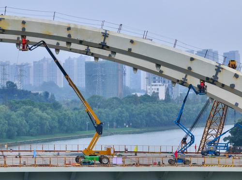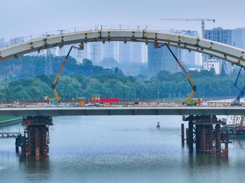 图片说明:2023年9月5日,江苏省南京市梅苑南路跨秦淮新河大桥施工现场。