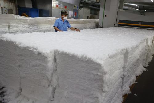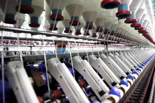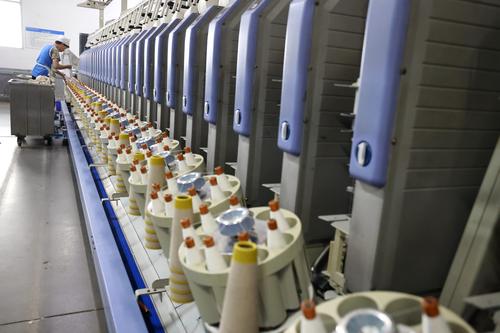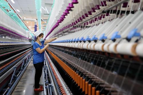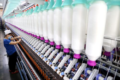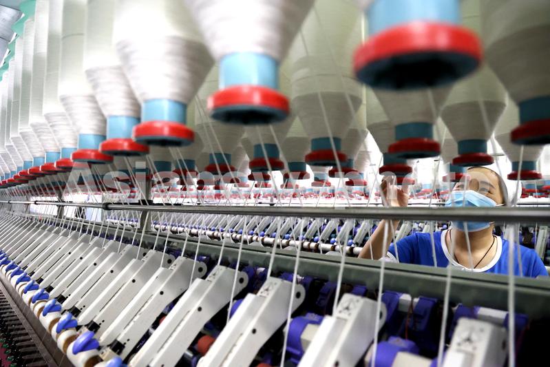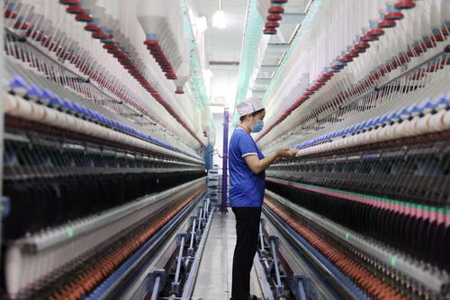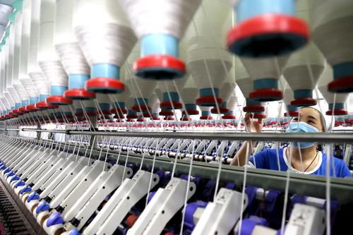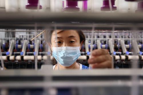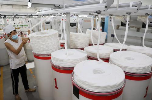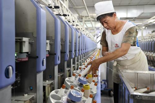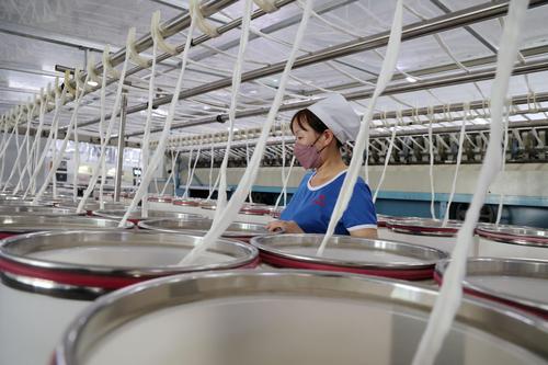 图片说明:9月5日,工人在山东省滨州市沾化区黄升镇祥瑞祥纺织企业车间内忙碌。