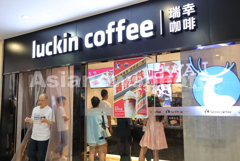 图片说明:2023年9月5日,重庆市沙坪坝区三峡广场一瑞幸咖啡店,市民排队购买“酱香拿铁”。