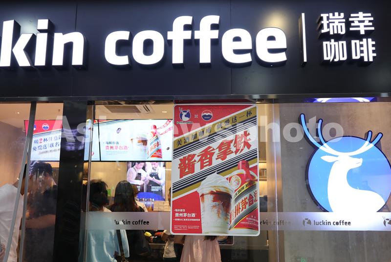 图片说明:2023年9月5日,重庆市沙坪坝区三峡广场一瑞幸咖啡店,市民排队购买“酱香拿铁”。
