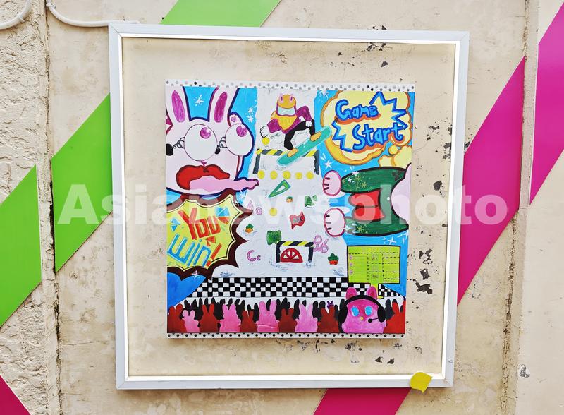 2023年9月5日,上海,申城首家社区弄堂美术馆“华漾美术馆”展出充满童趣的儿童原创艺术作品。
