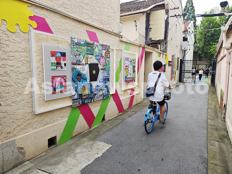 2023年9月5日,上海,申城首家社区弄堂美术馆“华漾美术馆”展出各种创意涂鸦墙绘及充满童趣的儿童原创艺术作品。