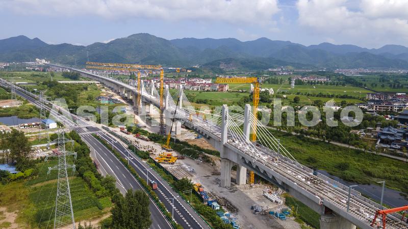 浙江金华:杭温高铁横店特大桥矮塔斜拉桥完成张拉 查看组图
