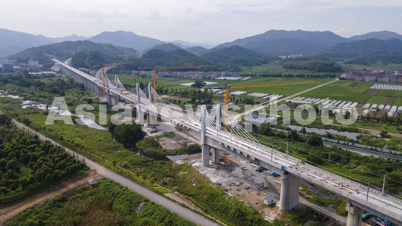 浙江金华:杭温高铁横店特大桥矮塔斜拉桥完成张拉 查看组图
