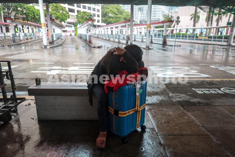 9月8日,香港尖沙咀码头外,受暴雨影响交通暂停,旅客在等候交通恢复。中国日报记者 庄振邦 摄