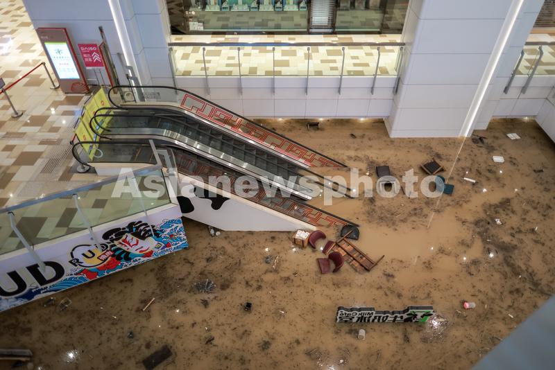 9月8日,香港黄大仙区,一家商场内部被洪水淹没,水位超过一层楼。中国日报记者 庄振邦 摄