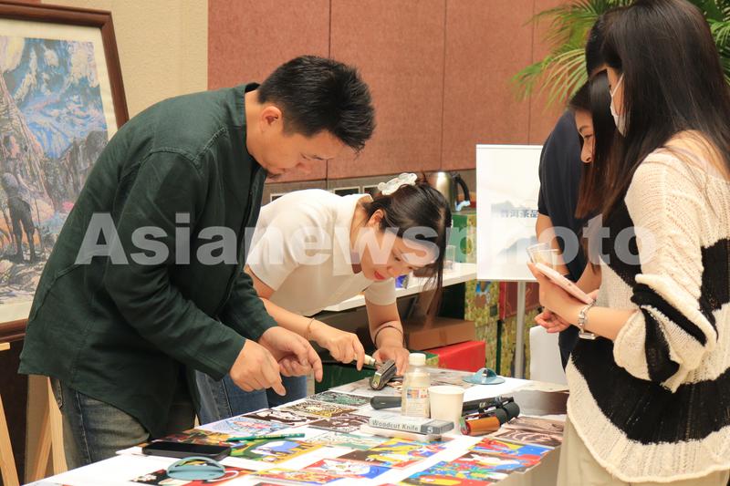 此外,现场的哈尼刺绣、佤族织锦、金水漏印、象脚鼓制作、绝版木刻等非物质文化遗产也吸引了大家驻足观看,有的嘉宾则现场体验金水漏印和绝版木刻等非遗项目。