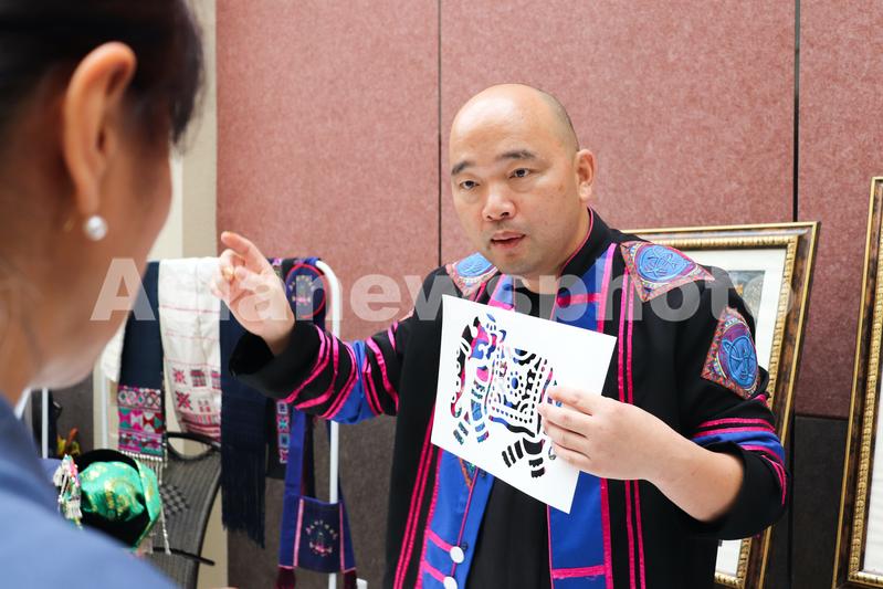 此外,现场的哈尼刺绣、佤族织锦、金水漏印、象脚鼓制作、绝版木刻等非物质文化遗产也吸引了大家驻足观看,有的嘉宾则现场体验金水漏印和绝版木刻等非遗项目。