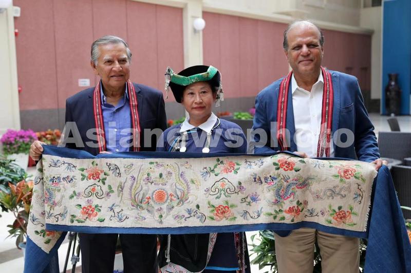 此外,现场的哈尼刺绣、佤族织锦、金水漏印、象脚鼓制作、绝版木刻等非物质文化遗产也吸引了大家驻足观看,有的嘉宾则现场体验金水漏印和绝版木刻等非遗项目。