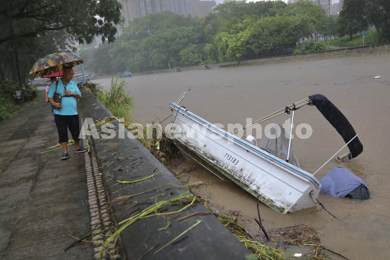 9月8日,香港新界大埔区,停泊在林村河上的船只受到不同程度的损坏。中国日报记者 邓永安 摄