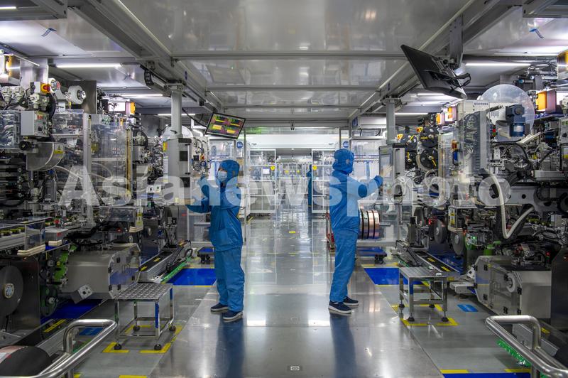 图片说明:2023年9月7日,浙江省东阳市横店镇东磁高新产业园区锂电池自动化生产车间里,工人们正在忙碌生产。