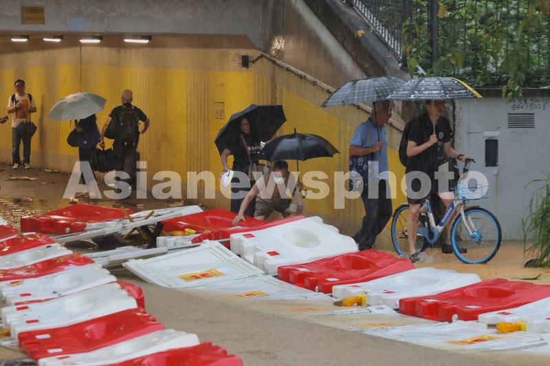 9月8日,香港新界大埔区,行人涉水出行。中国日报记者 邓永安 摄