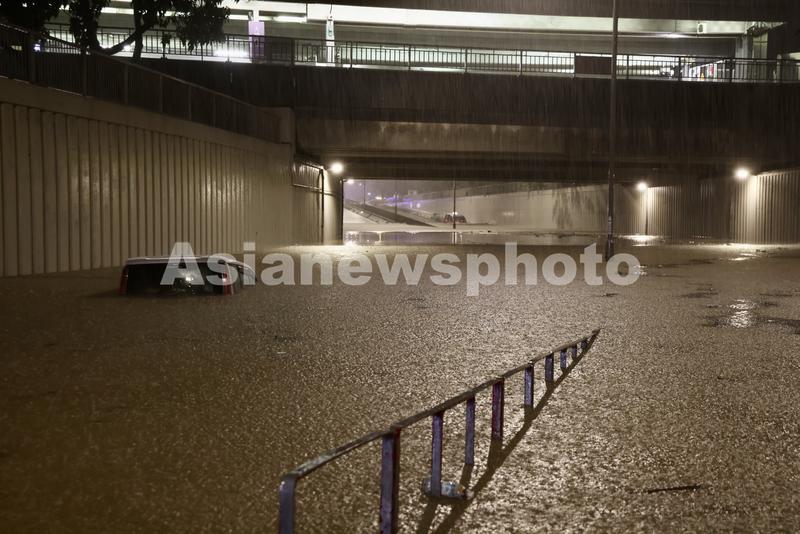 9月8日凌晨,香港新界大埔区,车辆困在洪水中。中国日报记者 邓永安 摄