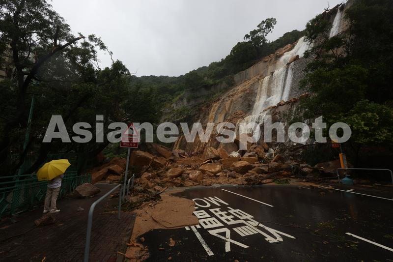 9月8日,香港筲箕湾耀兴道,部分路段遭遇山泥倾泻。中国日报记者 吴家耀 摄