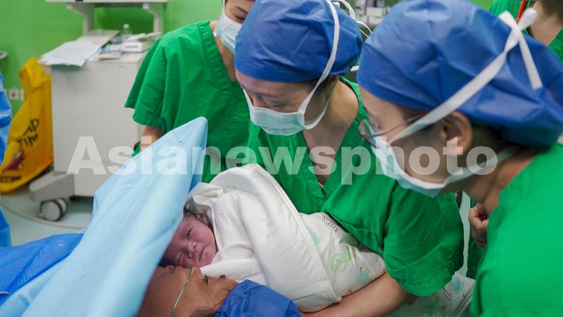 图片说明:中国海军“和平方舟”号医院船执行“和谐使命-2023”任务中的第3名“和平宝宝”在东帝汶诞生,新生儿与母亲第一次见面(9月5日摄)。李珂嘉贺 摄