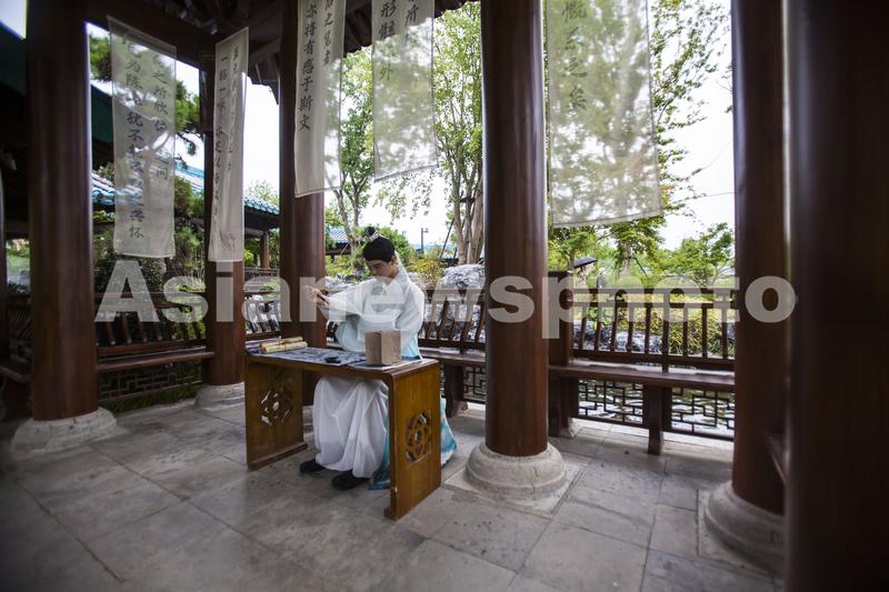 2023年9月10日,工作人员在南京金陵小城景区进行沉浸式表演。