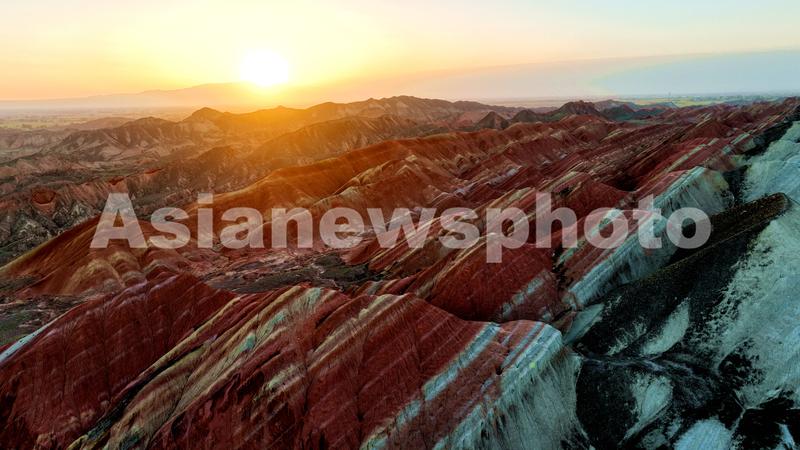 图片说明:2023年9月11日,阳光照耀下的甘肃张掖七彩丹霞景如画。