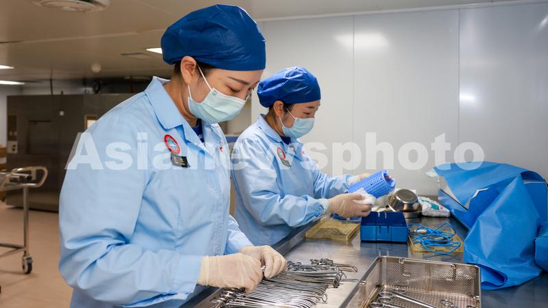图片说明:“和平方舟”号医院船在访问东帝汶并开展医疗服务期间,受到东帝汶人民的热烈欢迎。图为9月6日晚医护人员正在为手术器械进行消毒-陈云飞 摄