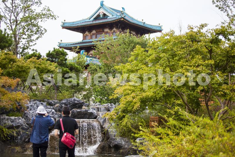 2023年9月10日,游人在南京金陵小城景区赏景游玩。
