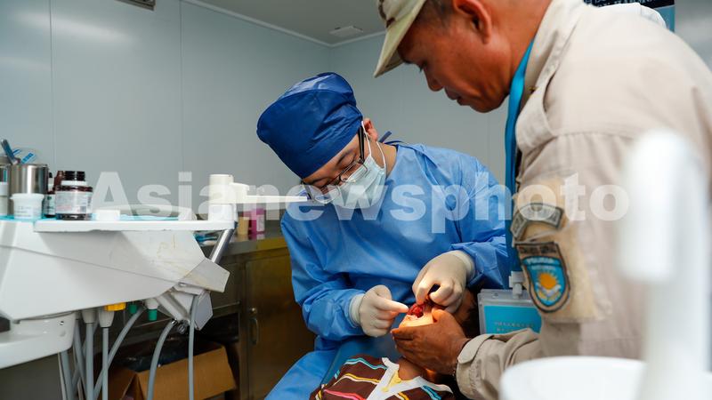 图片说明:“和平方舟”号医院船在访问东帝汶并开展医疗服务期间,受到东帝汶人民的热烈欢迎。图为9月7日医院船口腔科陈辰医生为当地患者实施口腔手术-黎宇 摄