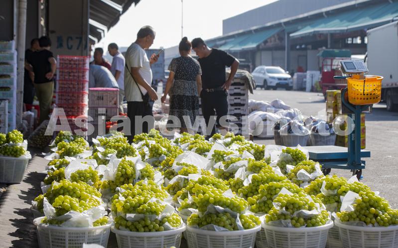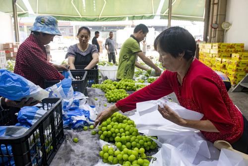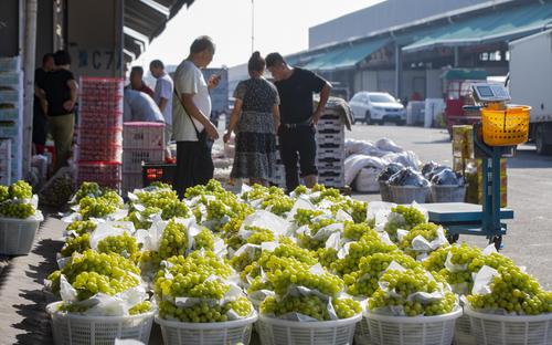 2023年9月11日,在浙江省金华市水果批发市场,大量上市的葡萄。