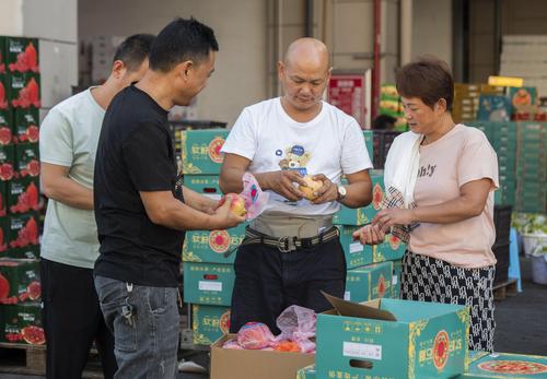 今年各地水果丰收,为迎接中秋节和国庆节前后的销售高峰,批发经营户提前到水果产地收购,备足货源。
