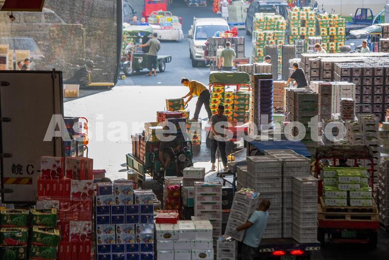2023年9月11日,在浙江省金华市水果批发市场,各种国产和进口水果摆满了经营户商铺,进货、卸货的人员和车辆一片忙碌景象,水果销售迎来了一年中的旺季。