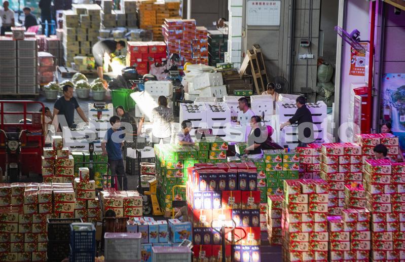 2023年9月11日,在浙江省金华市水果批发市场,各种国产和进口水果摆满了经营户商铺,进货、卸货的人员和车辆一片忙碌景象,水果销售迎来了一年中的旺季。