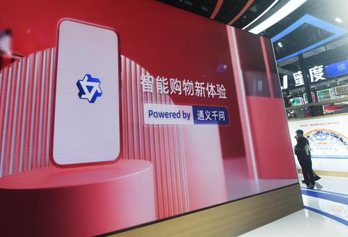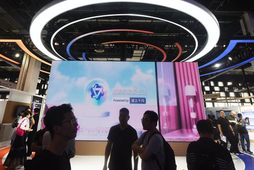 2023年7月6日,阿里巴巴的通义千问展台亮相上海举办的2023世界人工智能大会。