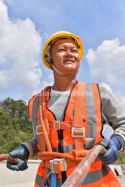 图片说明:2023年9月11日,六安高速公路第14标段工程建设项目现场的贵州省公路集团的施工人员。