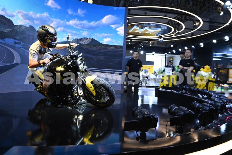 2023年9月16日,重庆国际博览中心,观众在第二十一届中国国际摩托车博览会现场观展体验。