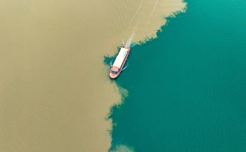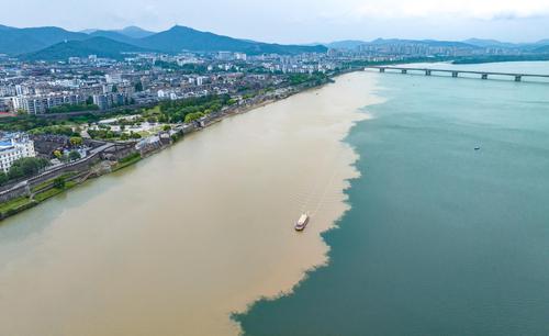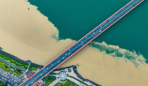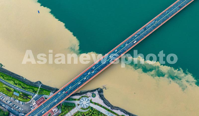 湖北襄阳:雨后汉江现“泾渭分明”景观 查看组图