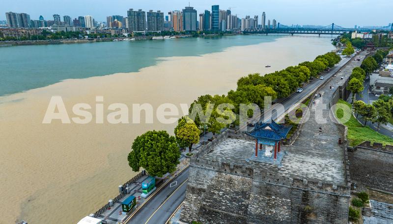 湖北襄阳:雨后汉江现“泾渭分明”景观 查看组图