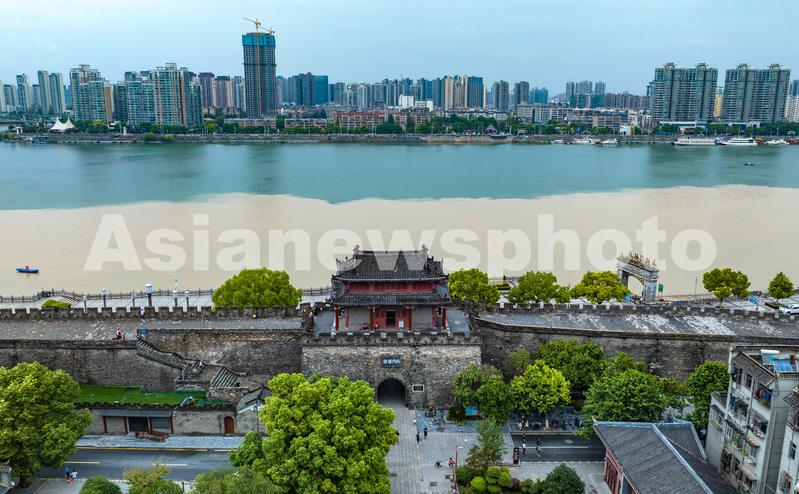 湖北襄阳:雨后汉江现“泾渭分明”景观 查看组图