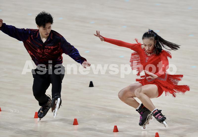 杭州亚运会丨轮滑——张颢/朱思怡组合夺得混合自由式轮滑男女双人花式绕桩金牌 查看组图