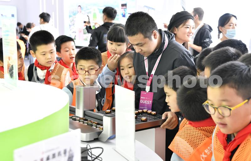 图片说明:2023年10月24日,安徽省合肥市,第六届世界声博会暨2023全球1024开发者节在位于蜀山区的合肥体育中心开幕,小朋友在体验智能教学设备。