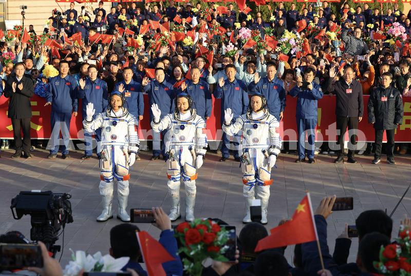 神舟十七号载人飞行任务航天员乘组出征仪式在酒泉卫星发射中心举行